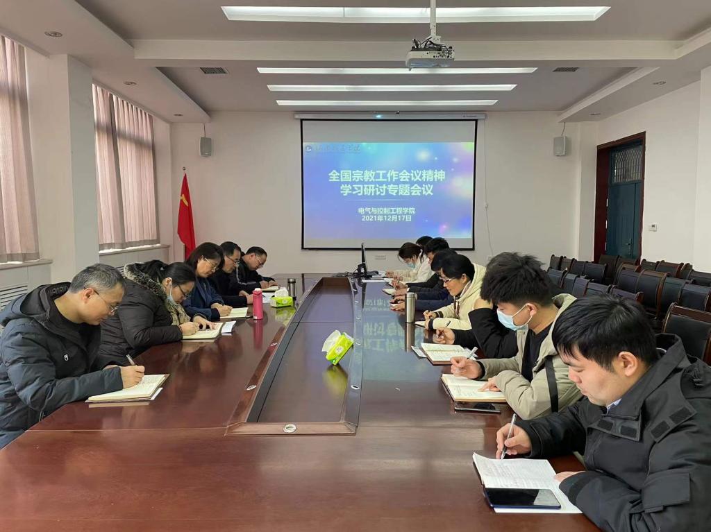(通讯员 徐娟)2021年12月17日下午,yl6809永利集团在善思楼B座313会议室召开了全国宗教工作会议精神学习研讨专题会议,学院党委委员、领导班子、各支部书记及支委参加了会议,会议由学院党委书记杜留记主持。