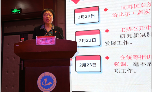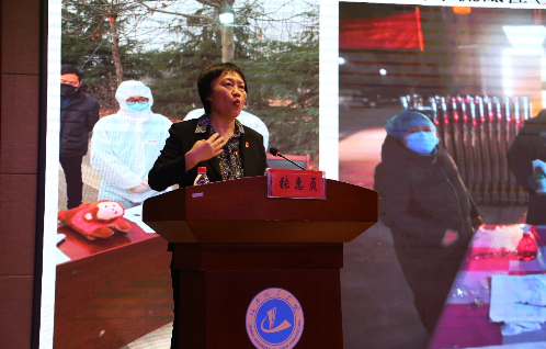 张惠贞从抗击疫情回顾、疫情防控中的切身感受以及疫情防控给我们的启示三个方面为大家讲授。她以总书记指挥防疫工作日志为引线,让同学们看到“党旗在防控疫情斗争第一线高高飘扬”。她从总书记关心全国医务人员的健康、回信勉励北京大学援鄂医疗队等重要工作方面,展示了党和国家始终将人民的健康安全放在首要位置;她结合自身经历,讲述了在与同学们同命运共呼吸的时刻的行为表现,引导同学们看到党的领导力量与社会主义制度的优越性。她指出,党的领导是取得全国抗疫斗争重大战略成果的根本原因。从“用渐冻生命,与死神竞速”的张定宇、年过七旬仍坚守在抗疫第一线的老党员,到牺牲自己节假日也要保证学校后勤的老师,他们传递的是一种力量,一种使命担当。她用这些鲜活的事例,让同学们更深切体会到了党员先锋模范是全民战疫中的中流砥柱,党员全心全意为人民服务的宗旨,更充分体会了中国社会主义制度的优越性。社会主义制度优越性是战胜疫情的根本保证。超强的组织动员能力、高效的组织协调能力、核心价值的引领能力、强大民族凝聚能力,10天完成对雷神山、火神山医院的建设,无不体现了中国速度,向世界生动展示了中国形象。同时,中国为其他国家提供了各种援助,让世界看到了中国对世界的担当和责任,将人类命运共同体这个理论完美的阐述。此次抗疫铸就了生命至上、举国同心、舍生忘死、尊重科学、命运与共的伟大抗疫精神。