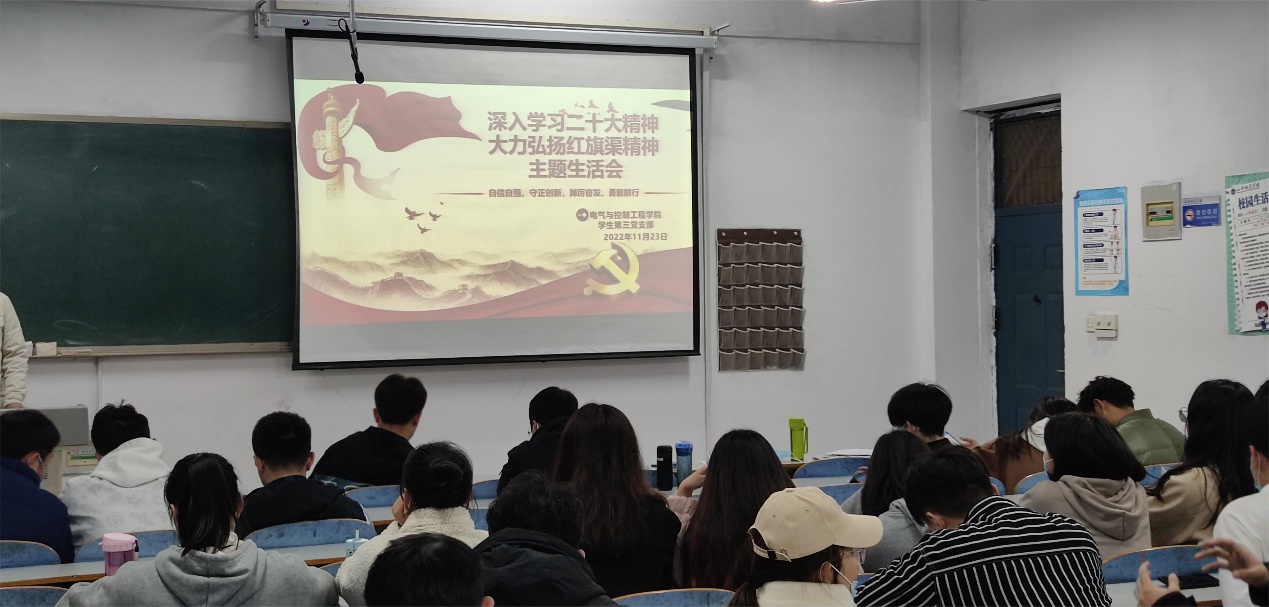 学生第三党支部于2022年11月23日下午在善思楼B507召开了“深入学习习近平总书记视察安阳重要讲话精神,大力弘扬红旗渠精神”专题组织生活会。大家围绕习近平总书记重要讲话精神、红旗渠精神和党的二十大精神进行了面对面学习交流。与会党员纷纷表示,红旗渠不仅仅是一项单纯的水利工程,更是象征中华民族自强不息的精神之魂。大家要把党的二十大精神和习近平总书记重要讲话精神转化为内在责任与精神动力,将红旗渠精神融入到思想中、行动上、学习中,在新时代的浪潮中勇挑重担、勇立潮头,不断展现新气象、彰显新作为。