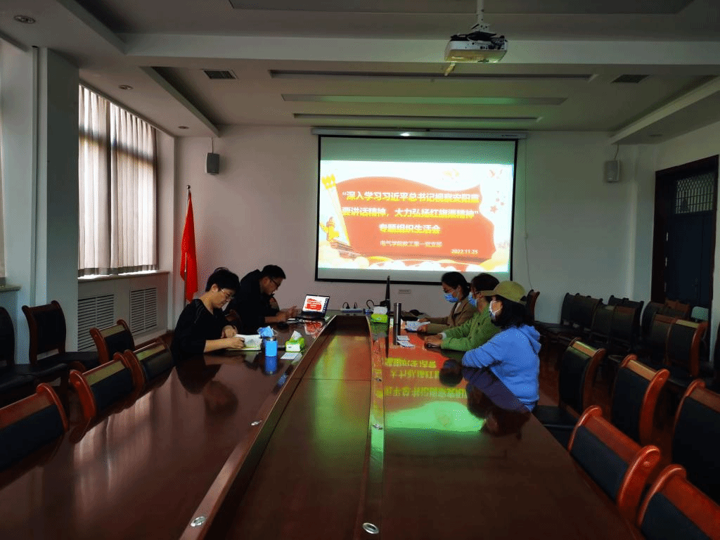 教工第一党支部于2022年11月25日下午,线上线下同步开展了“深入学习习近平总书记视察安阳重要讲话精神,大力弘扬红旗渠精神”为主题的组织生活会,会议由支部书记祁林主持,院长董燕飞和党委副书记宁蕴绯以普通党员身份参加了此次专题组织生活会。在组织生活会上,祁林同志带领全体党员集中学习了习近平总书记视察安阳重要讲话精神。全体党员观看了专题片《根脉—红旗渠精神》。通过视频,使党员教师深刻感悟了红旗渠精神,深刻理解把握“自力更生、艰苦创业、团结协作、无私奉献”红旗渠精神的丰富内涵,全体党员畅所欲言,开展批评和自我批评,将会议主题与自己的教学科研管理工作紧密结合,真正发现问题、完善自己,查摆了工作学习中存在的问题,并分析了产生问题的原因、改进的措施及下一步努力的方向。