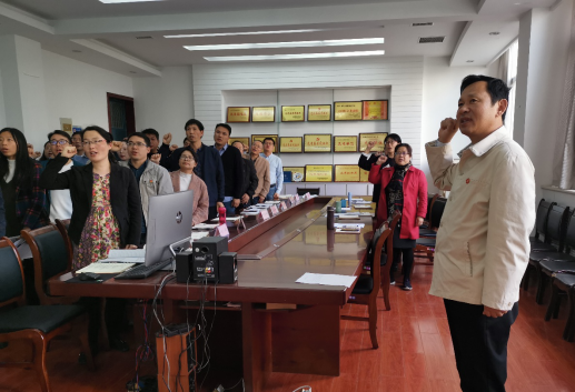 (通讯员王丹阳)为深入贯彻习近平新时代中国特色社会主义思想和党的十九大精神,认真贯彻落实习近平总书记在全国教育大会上的重要讲话精神,结合“不忘初心、牢记使命”主题教育,积极组织开展以“守规矩、倡廉洁、扬正气——庆祝新中国成立70年华诞”为主题的第三届廉洁文化教育月相关活动,10月29日下午,电气学院组织全体教职工进行“河南教师誓词”宣誓活动。