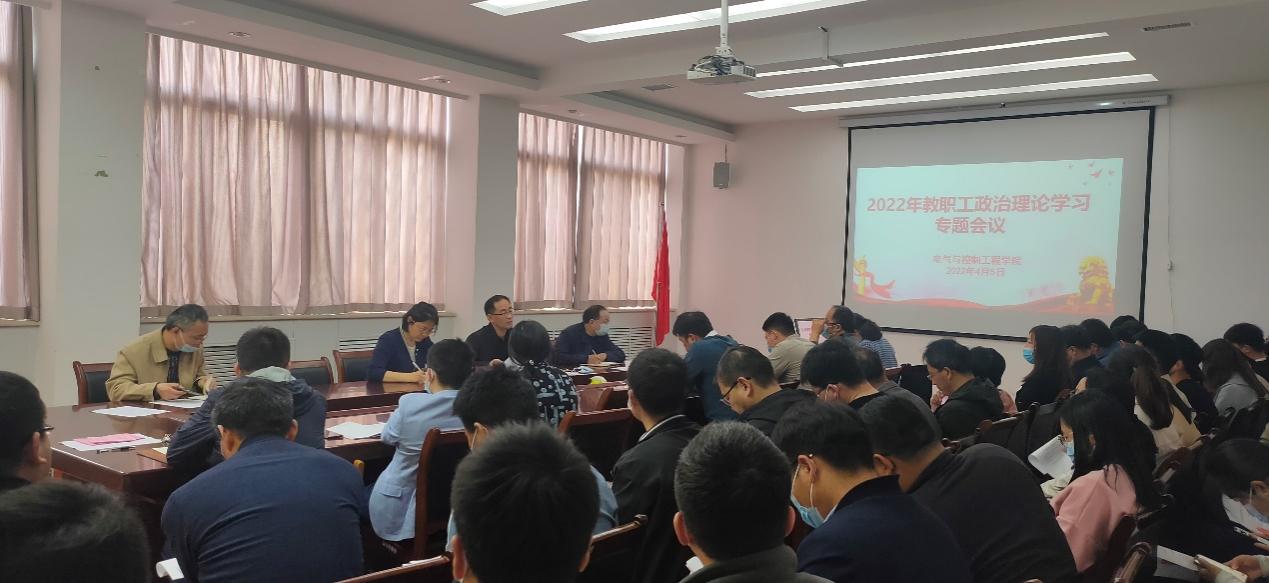 (通讯员 王旭红)4月5日下午,yl6809永利集团召开教职工政治理论专题会议,学院领导班子成员和全体教师参加会议。会议由学院党委书记杜留记主持。