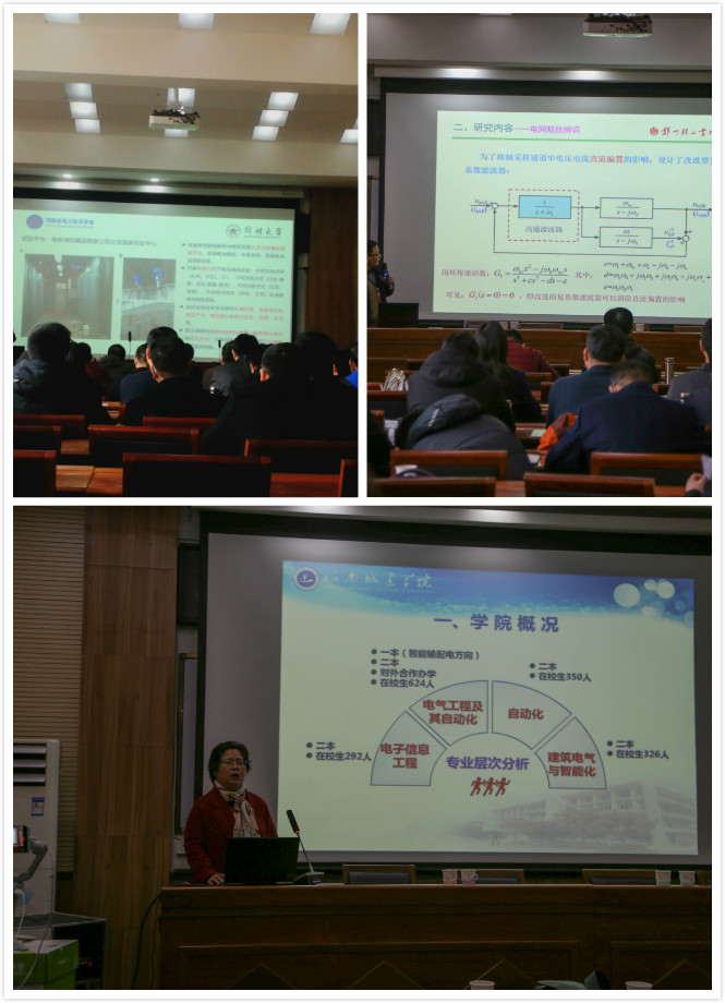 在学术年会上,与会嘉宾围绕年会主题,分别作了学术报告。其中郑州大学金阳博士作了《锂电子电池储能电站早期安全预警》、中原工学院闫李博士作了《多模态多目标复杂进化算法的研究及应用》、郑州轻工业大学郭磊磊博士作了《弱电网下风电变流器的阻抗自适应双模式并网运行控制研究》等学术报告。樊晓虹教授代表yl6809永利集团做专题报告,她简要地介绍了我校发展的基本概况、发展思路、发展目标以及yl6809永利集团发展的历程、办学经验与成效等。她表示,yl6809永利集团愿意和各兄弟院校一起,凝心聚力,为电气学科的建设和发展出谋划策,为服务行业进步和地方经济社会发展做出新的更大的贡献。