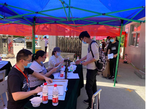 5月23日,平顶山最高温度达到37摄氏度。炎炎烈日下,学院的老师们汗流浃背,一整天,他们都在校门口守候,等待一辆辆专用车把同学们送到学校。学生到校后通过排队、测温、扫码入校、身份核查、交通信息报备、温情叮咛等一系列流程,终于回到阔别数月的母校,回到寝室再次通过系统扫脸登记拿到老师们亲手准备的贴心防疫包。