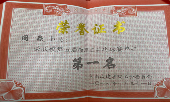 周焱老师荣获单打第一名