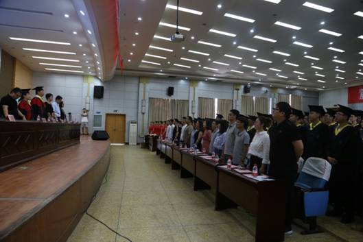 仪式在庄严雄壮的国歌声中拉开帷幕。仪式上,学院领导分别宣读了省级、校级优秀毕业生表彰决定以及获得学位的毕业生名单,同时对获得省级、校级优秀毕业生代表进行了表彰。随后,毕业生代表杜梦欣发言,她表达了对母校、对老师四年的悉心教导和精心栽培的感激之情,表达了将承载着校园的希望,毕业生们定会为社会做出更多的贡献,为母校争光。教师代表李佳佳为即将走出校门的莘莘学子送去真挚的祝福和殷切的希望,表达了对毕业生的不舍与叮咛。之后副校长赵金安教授、院长樊晓虹教授向张高瑞等464名获得学位的学生一一拨苏正冠、授予学位、颁发学位证书并合影留念。最后,院长樊晓虹教授进行了总结发言,她首先代表学院向电气学院2019届毕业生顺利完成学业表示祝贺。随后,历数了电气学院一些优秀学生的先进事迹,希望学生们能时刻保持优秀的习惯,为社会做出更多的贡献。她表示母校永远是毕业生们的家,随时欢迎他们回来!本次学位授予仪式在校歌声中圆满结束!