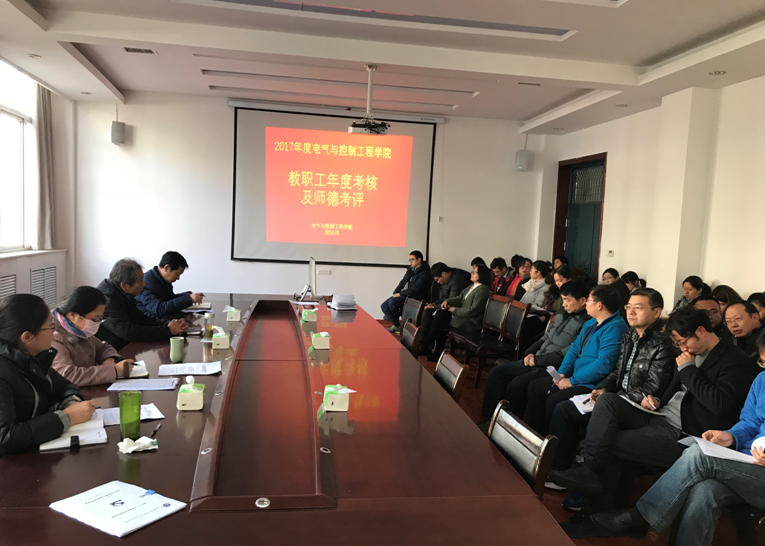 根据yl6809永利集团关于2017年度教职工考核工作的通知及2017年度教师师德考核工作的通知,根据河南省人力资源和社会保障厅《关于做好2017年事业单位工作人员年度考核工作有关问题的通知》(豫人社事业〔2017〕99号)的文件精神,《教育部关于建立健全高校师德建设长效机制的意见》要求和《yl6809永利集团师德考核办法》的规定,结合我院工作实际,2017年1月9日下午2点,yl6809永利集团2017年度教职工考核及师德考核工作在2号教学楼B313举行。学院领导班子成员赵静生、樊晓虹、孙炳海和董燕飞、以及电气学院全体教师共43名教职工参加了会议。会议由党总支书记赵静生同志主持。