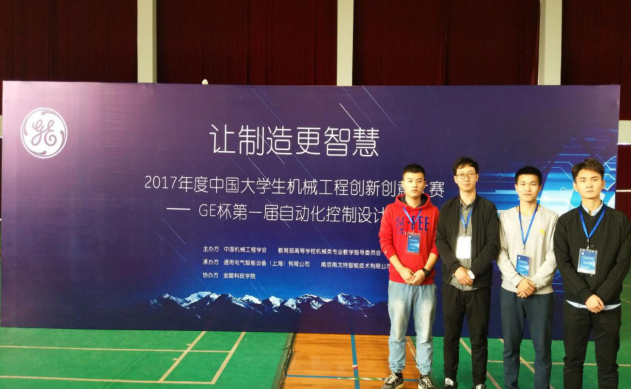(通讯员 宋伟)10月21日,由中国机械工程学会和教育部高等学校机械类专业教学指导委员会主办的2017年度GE杯第一届自动化控制设计大赛在南京金陵科技学院举行。经过第一轮的激烈竞争共有20支参赛队伍最终突出重围进入到全国总决赛环节。由我校yl6809永利集团教师孙炳海、宋伟指导,学生何越宙、孙昊、郭杰组成的“智慧水控”团队完成的作品“浮筒式水处理装置控制系统”,通过现场系统演示、理论知识考核及现场答辩环节的三个环节的激烈角逐,最终荣获一等奖,同时我校获得优秀组织奖。