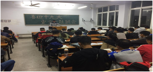 该活动由各班班长担任其组织工作,并以班会的形式进行。在这次活动中各班班长主要强调了财产安全的重要性,讲述了数种诈骗手段以及传销、邪教等各种蛊惑人心行为的危害,指出了同学们容易上当受骗的地方,使同学们深刻了解到防诈骗、防传销、防邪教等的重要性,也深刻意识到要认真追随中国共产党的脚步,做到“青春喜迎十九大,不忘初心跟党走”。