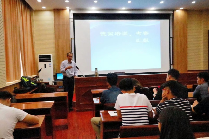 为契合国家“贯彻落实教育方针,学习国外先进知识,促进学生全面发展”的政策,同时切实强化广大学生的就业创业能力,提升学生专业素质,6日晚yl6809永利集团党总支书记赵静生进行了以“转型办学思路,提升个人能力”为主题的德国培训考察汇报交流会,全体大一大二班长团支书及第八届全体学生会部长、主席团成员等参与此次交流会。yl6809永利集团党总支书记赵静生于2017年3月前往德国为时20多天的培训考察。赵书记深刻的剖析了当今的国际形势,以自己在德国考察的亲身经历,对德国的文明礼仪、教育模式、道路建设等方面对比和反思。向同学们介绍德国之行的中西文化冲击。