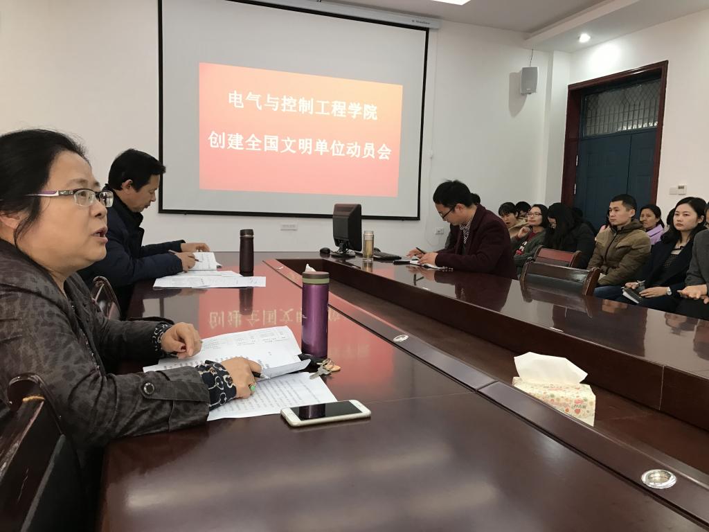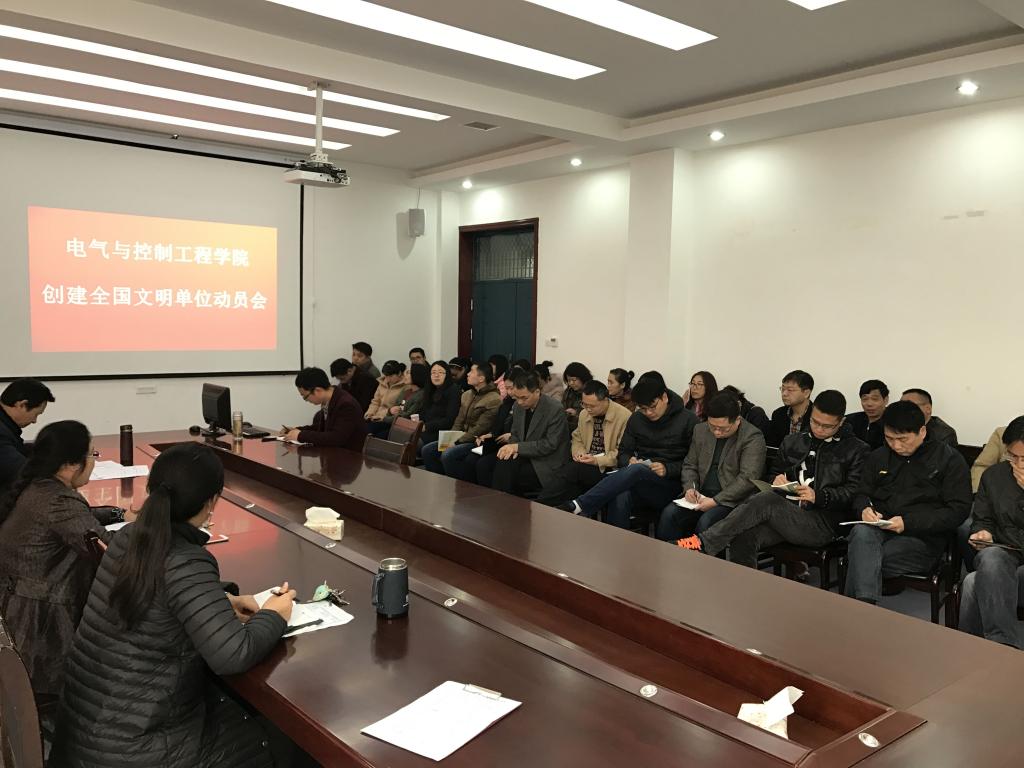 (通讯员:贺伟)03月22日,电气与控制工程在2#B313会议室召开创建全国文明单位动员大会,学院全体教师参与此次会议。