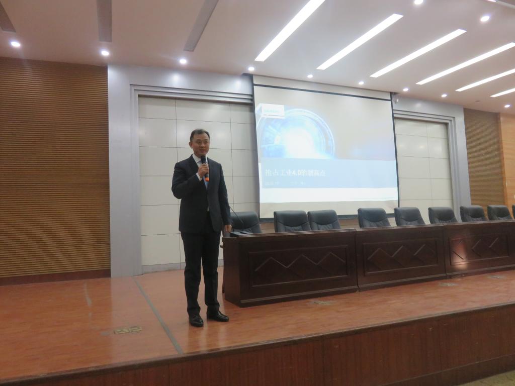 丁宁首先介绍了西门子公司对工业4.0时代的诠释,他围绕“数字化工厂”和“过程工业与驱动”两方面做了深入的讲解。在企业如何盈利这个问题上,丁宁指出核心是“把握客户需要,完成定制化生产”,在此情况下,产品的个性化将需要缩短产品生产周期,提高产品制造的要求。之后,他浅谈了西门子TIA全集成自动化理念,并辅以一段展示TIA如何应用于工厂的实际生产的视频。他重点阐述了“制造业的未来”与企业对人才的素质需求,他指出知识、经验、能力是衡量人才的三大标准,对事物的决断能力和主动解决问题的积极性也是很重要的因素。精彩的报告赢得了现场师生的阵阵掌声。