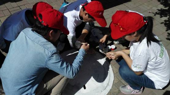 活动伊始,现场人们肃立默哀一分钟以表达对地震遇难同胞的哀思。同时现场还有急救措施、一只手系绳子、无常献血及小游戏来教大家如何在危险时刻做好急救措施。电气学院志愿者除了在现场进行志愿服务外,还在井盖上涂鸦,宣传防灾减灾的相关知识,得到主办方及市民的一致好评。