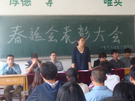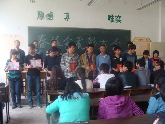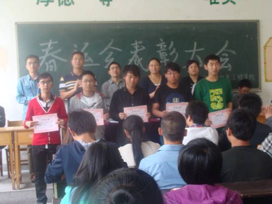 (通讯员:宁蕴绯 林玉松)2013年4月17日中午,yl6809永利集团春运会表彰大会在2#B407举行。参加此次大会的有yl6809永利集团党总支副书记董燕飞、团总支副书记宁蕴绯、学工办副主任邢广成及全体辅导员老师、学生会主席团成员、学生会各部门部长及干事、春运会运动员及部分后勤工作人员。