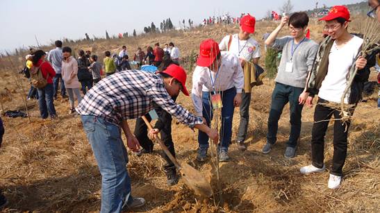 早晨七点半志愿者带上铁铲、水桶等植树工具在系楼前集合完毕后,经过一个多小时的车程来到山顶公园。经过统一分配,志愿者挖坑,栽树,浇水忙的不亦乐乎。经过一个半小时的劳动,志愿者成功种植了十棵树苗。虽然很累,甚至有的志愿者手上磨出了水泡,但都没有抱怨,因为他们知道这样做将是为美好家园打基础。此次活动志愿者用实际行动为这春暖花开的日子增添一片绿色,让大家可以更多地关注周围的环境。