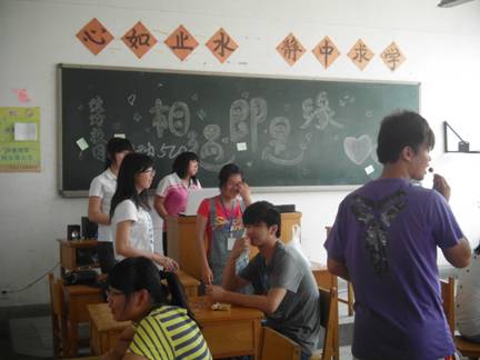 前来参加活动的同学有电气系,土木系,法律系等。活动在“直呼其名”的小游戏中展开。通过“直呼其名”这个游戏,帮助大家以一种轻松地方式相互认识了,为接下来的游戏及交谈做好了铺垫。几个游戏下来,大家不仅展示了自己的才艺,也使现场的气氛活跃了起来,大家都high了起来,迫不及待的想要进行八分钟交谈环节中。通过抽签配对的方式,大家都找到了自己的交谈对象,都开心的聊得起来。聊天的过程中,大家还很有心的把自己的感受写在了我们事先准备好的便利贴上,纷纷贴在了黑板上。现场气氛达到高潮。第一轮八分钟后,通过男生换位又依次进行了几轮的交谈。