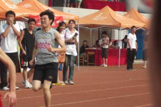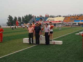 系书记李宝宏为我系学生李光丽(女子800米冠军)颁奖