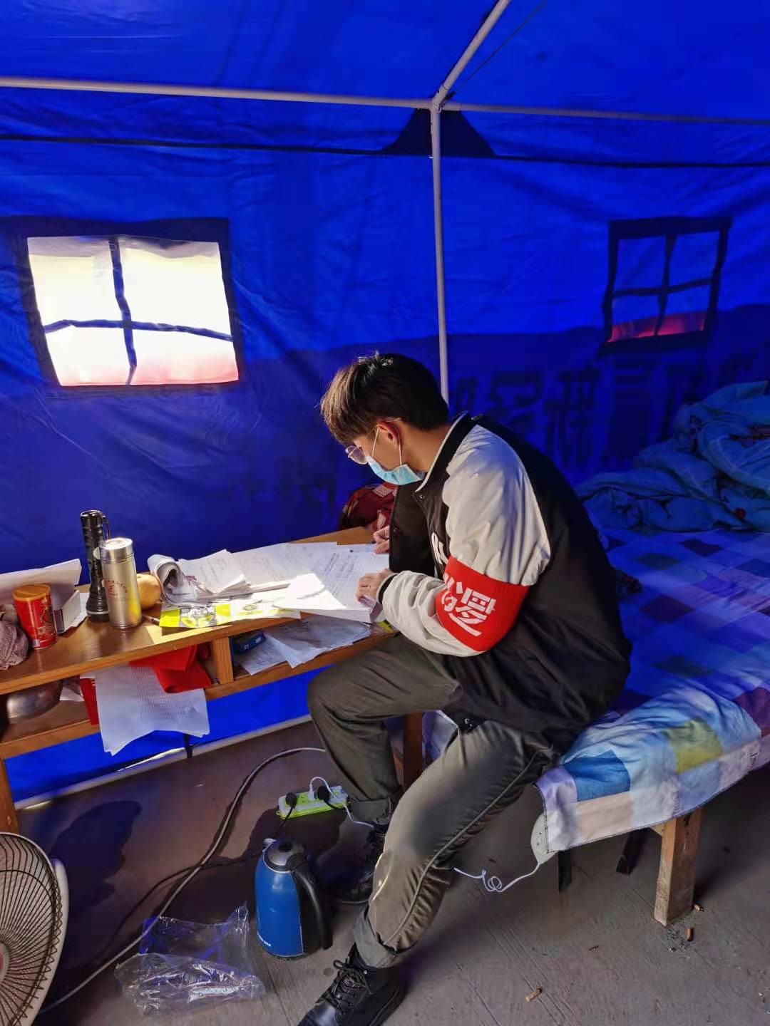 张俊,yl6809永利集团学生第一支部的一名预备党员。在腊月二十八——农历新年来临之际,他所在的村子就开始了封村行动。望着那些逆行党员的背影,他义无反顾地加入到了大家的行列之中。“哪有什么岁月安好,只是有人替我们负重前行。”这是张俊在此次基层抗疫中最大的感悟。过年前后正是新冠肺炎最猖獗的时候,而张俊选择和村委的党员干部们一起不分昼夜地做着基层防护工作。起初,有的村民们并不理解这样的行为,可张俊和村委的成员们并没有因此气馁,而是一遍遍耐心地做着村民们的思想工作。白日消毒、晚上住帐篷里守卫村落的安全成为他们每天工作的常态。和他在一起战斗的党员同志说:“兵来将挡,水来土掩。就算疫情猛于水火,而我们共产党人永远是堵在它面前的第一道防线!”通过与党员同志的不断接触,张俊领略到共产党人的大义,共产党人的伟岸形象也在他的心中扎下了深根。他说:“相信这场战役必定会胜利,待到春来山花漫烂之时,你我共饮庆功酒!”
