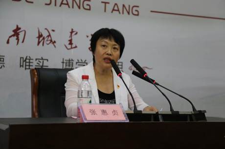 张惠贞重点围绕“在艰难险阻中展现初心、履行使命”“在担当作为中守住初心、担起使命”等两个方面,通过回顾我们党在革命战争年代、社会主义革命和建设时期、新中国成立后、改革开放以来以及党的十八大以来我国各个发展阶段所取得的巨大发展成就,指出我们党的初心和使命始终是为中国人民谋幸福、为中华民族谋复兴,这些成就的取得与这个初心和使命是分不开的。回首来路,初心和使命引领新中国站起来、富起来、强起来。我们之所以能够逐步发展壮大起来、能够不断从胜利走向新的胜利?根本原因就在于我们党始终坚守为中国人民谋幸福、为中华民族谋复兴这个初心和使命。眺望前路,初心和使命引领中华民族伟大复兴新征程。习近平总书记在党的十九大报告中指出:今天,我们比历史上任何时期都更接近、更有信心和能力实现中华民族伟大复兴的目标。但中华民族伟大复兴,绝不是轻轻松松、敲锣打鼓就能实现的,而是需要我们坚守初心、担当使命,付出更为艰巨、更为艰苦的努力。守初心、担使命,就是要牢记我们党肩负的实现中华民族伟大复兴的历史使命,勇于担当负责,积极主动作为,保持斗争精神,敢于直面风险挑战,以坚忍不拔的意志和无私无畏的勇气战胜前进道路上的一切艰难险阻。面对复杂多变的国际环境和艰巨繁重的国内改革发展稳定任务,党员干部要有责任重于泰山的意识,坚持党的原则第一、党的事业第一、人民利益第一,保持永不懈怠的精神状态和一往无前的奋斗姿态,勇于挑最重的担子、啃最硬的骨头,干在实处、走在前列,创造无愧于党和人民的新业绩。一要有担责的自觉,二要有担责的勇气,三要有担责的能力。当前学校处在转型发展的攻坚期,我们要以开展“不忘初心、牢记使命”主题教育为契机,敢于直面挑战,知重负重、攻坚克难,以坚忍不拔的意志和无私无畏的勇气,战胜前进道路上的一切艰难险阻。要时刻把牢奋斗实干这个落脚点和立德树人根本任务,把初心使命变成勇于进取、开拓创新的精气神和埋头苦干、真抓实干的自觉行动,努力建功新时代教育现代化、争创学校改革发展新业绩,为学校加快转型提升、高质量发展打下坚实基础,书写好城建发展的奋进之笔,为中原更加出彩增色添彩!