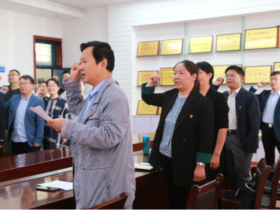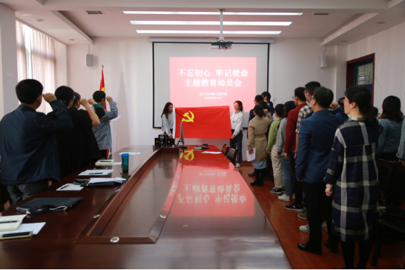 会上,由院副院长、教工第一党支部书记孙炳海同志领誓,全体党员面对党旗重温了入党誓词。