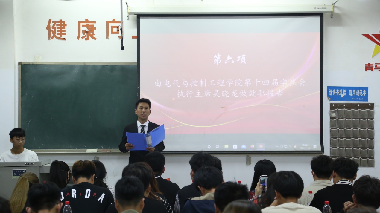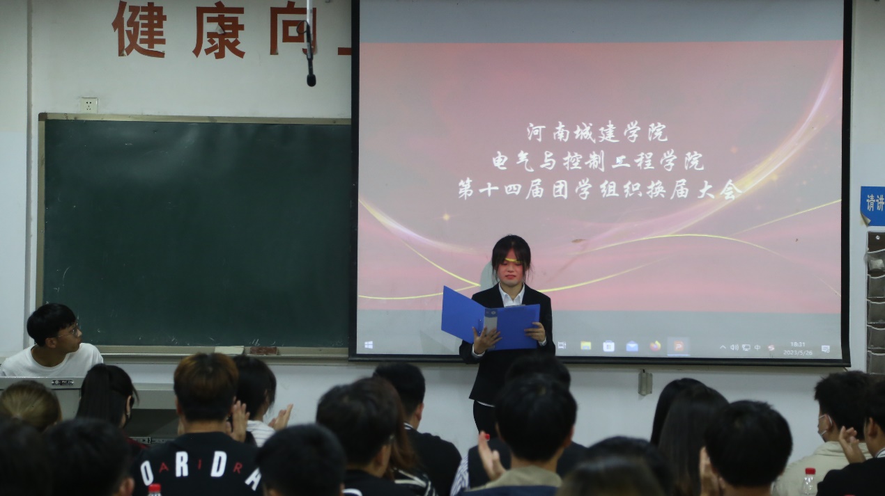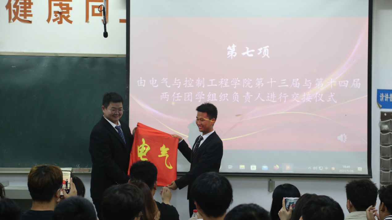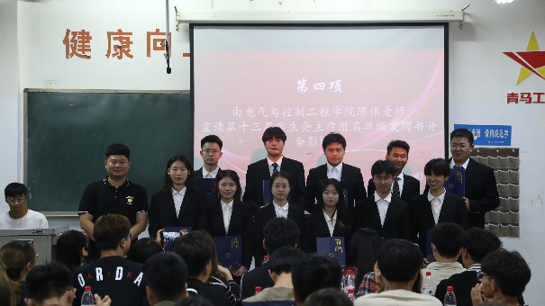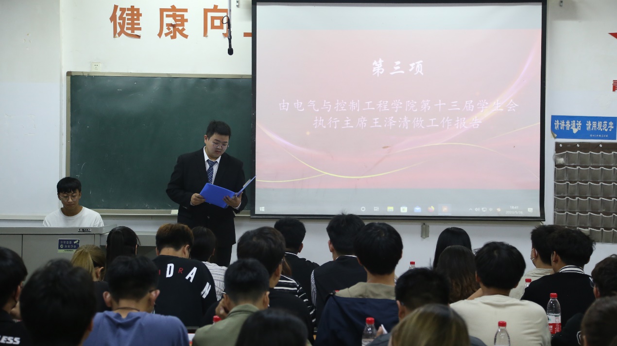 大会现场既严肃又活泼,首先由十三届执行主席王泽清作工作报告。接着,陈伟老师为十三届团学组织主要负责人颁发聘书,随后,吴雨泽老师宣布第十四届团学组织主要负责人名单。然后,第十四届执行主席吴晓龙作就职报告,报告中他再次明确学生团学组织的责任与担当,并表明在接下来的工作中将继续传承电气团结奋进的向上精神,力争在服务中更出彩。紧接着,两任执行主席进行交接仪式,最后,由徐娟老师致闭幕词。她指出不管在学院还是学院之间都离不开团结协作,正是这样的协作精神成就了现在的我们,今后,我们新的团队更要珍惜这建立起来的协作精神并持续深化,真正实现在实践中服务同学,锻炼自我。