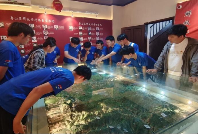 豫西革命纪念馆作为抗日战争时期的根据地之一,为全国抗日战争的胜利做出了重要贡献。以邓小平同志为代表的许多革命先烈都曾在此居住、办公,运筹帷幄中原解放战争的重大决策。活动当天,实践团成员们在豫西革命纪念馆了解了河南省委在发展历程,并在党旗下进行了庄严的宣誓。随后在讲解员的介绍下参观了邓小平的生平简介、红二十五军长征途径鲁山事迹、鲁山的早期革命活动以及抗日战争、解放战争时期重要事件的图片、实物、文字资料和“沙盘”等8个展馆,在历史的记忆中感受革命先烈在艰苦的环境中斗争足迹和英雄事迹,更加明确了身为新一代青年身上所肩负的使命与责任。