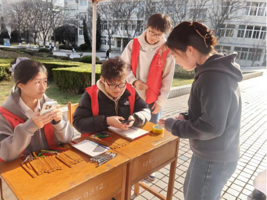 活动启动前,现场筹备工作紧锣密鼓,志愿者们提前在喷泉广场集结,分工明确后迅速准备宣传物料,正式拉开文明礼仪宣传活动的序幕。活动开展后,志愿者们一边分发定制礼仪主题书签,一边热情引导过往同学参与互动。同学们来到活动现场,在志愿者引导下进行校园礼仪线上答题。题目设置围绕校园日常礼仪,答题合格的同学可领取定制礼仪主题书签、笔记本等文创小礼品。过程中,同学们踊跃参与互动交流,在轻松氛围中快速掌握礼仪知识。整个活动开展期间,志愿者们始终保持热情耐心的服务态度,让文明风尚在校园里悄然传递。