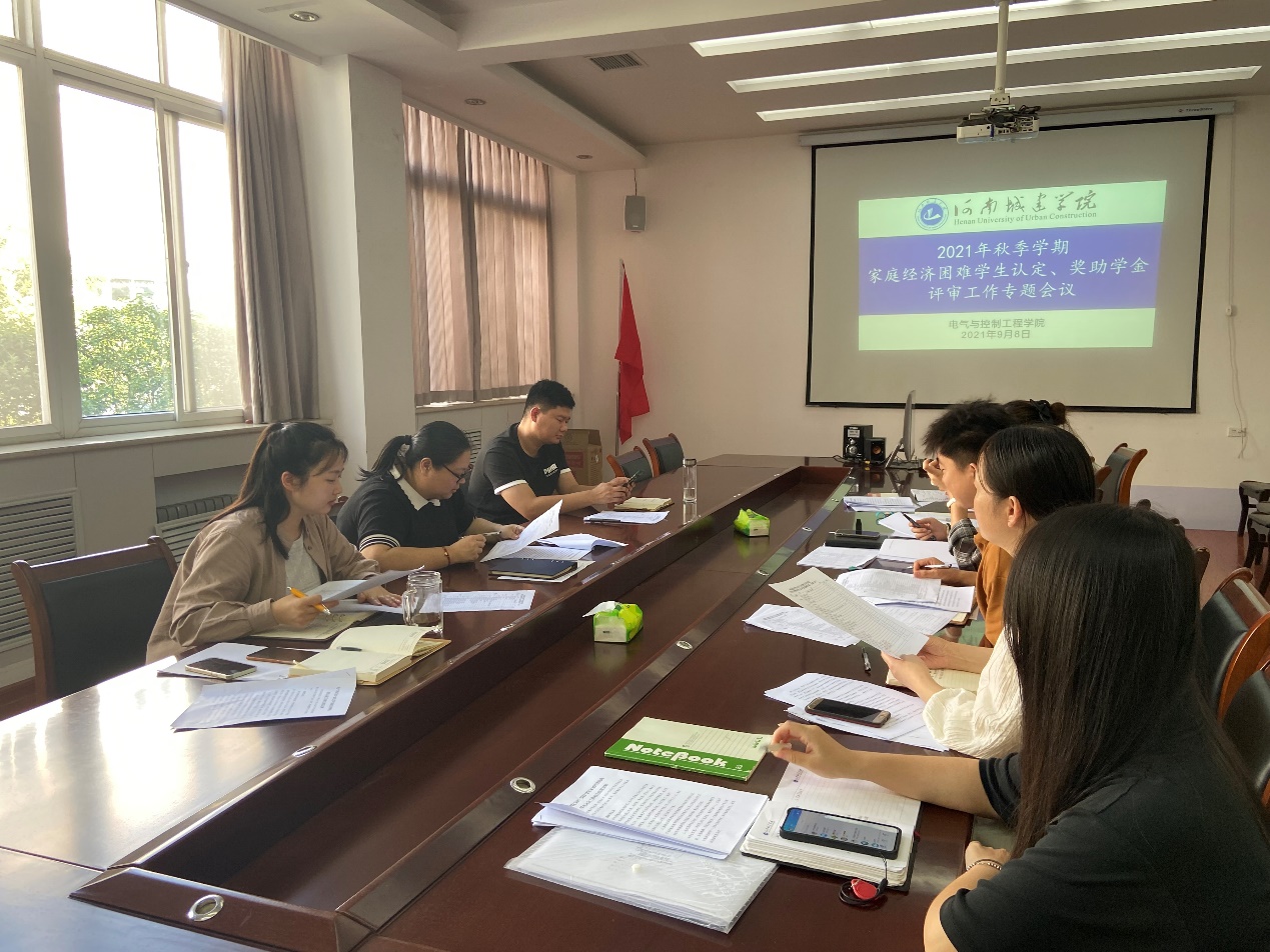 (通讯员 吴雨泽)为切实做好我院2021年家庭经济困难学生认定及奖助学金评审工作,公平、公正、合理分配国家资助资源,真正落实各项资助政策和措施,激励我院学子勤奋学习,2021年9月8日,电气学院于二号教学楼B313会议室召开2021年秋季学期家庭经济困难学生认定及奖助学金评审工作专题会议,学院党委副书记宁蕴绯、团总支副书记、学工办副主任徐娟、陈伟及全体辅导员老师参加了此次会议。