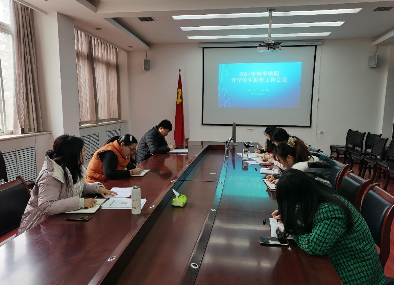 会上,徐娟首先对《yl6809永利集团2021年春季学期开学学生返校须知》重点事项进行了强调,同时根据学校返校工作要求,结合学院情况部署了在学生返校期间学工办各位老师的相关职责和任务。