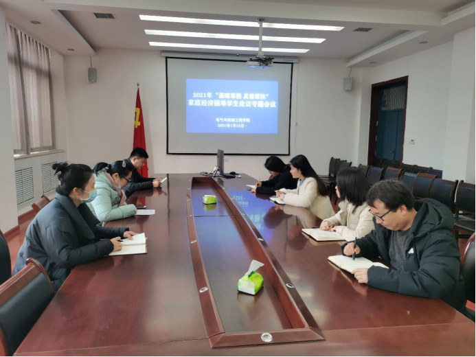 (通讯员:陈伟)为积极应对因疫情对家庭经济困难学生带来的影响,及时掌握困难家庭现状,确保脱贫攻坚等各项学生资助政策全面准确落实。1月15日,电气学院召开2021年“温暖寒假,真情帮扶”家庭经济困难学生走访专题会议。会议由电气学院资助专员陈伟主持,电气学院党委副书记宁蕴绯、团总支副书记学工办副主任徐娟及全体辅导员老师参加了此次会议。