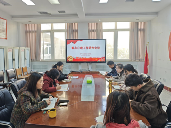 研判会上,各辅导员逐一汇报了各自工作的开展情况,并就工作中的难点、堵点展开交流讨论。与会老师针对心理工作总结经验、相互交流、获得启示,提出加强日常关注,强化家校协同,形成教育合力。