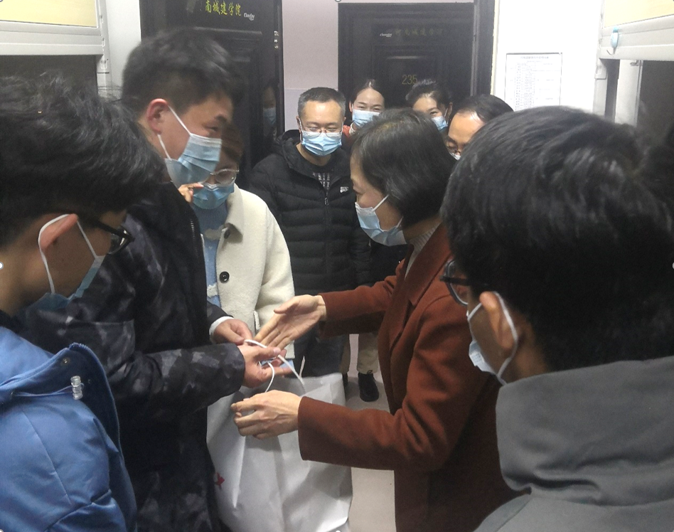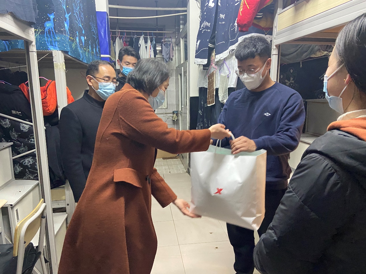 “你们家都是哪的?”,“专业课程都能熟练掌握吗?”,“临近期末,复习的怎么样了?”,“天冷了,要注意保暖防寒啊”........亲切的话语,细心的询问,丝丝关爱,沁入心脾。吴晓红关心同学们生活的同时,还对同学们养成良好的学习习惯、制定合理的学习目标提出了自己的建议。希望同学们在生活上要知足常乐,但学习上要勇往前,以学习为主,并常怀感恩之心,把大学四年学习的学习和生活安排好,提高自己的综合素质,为进一步发展打下坚实基础。随后吴晓红将羽绒服送到了同学们的手中,同学们带着微笑收下这份温暖,感动地说“谢谢老师,谢谢学校”。