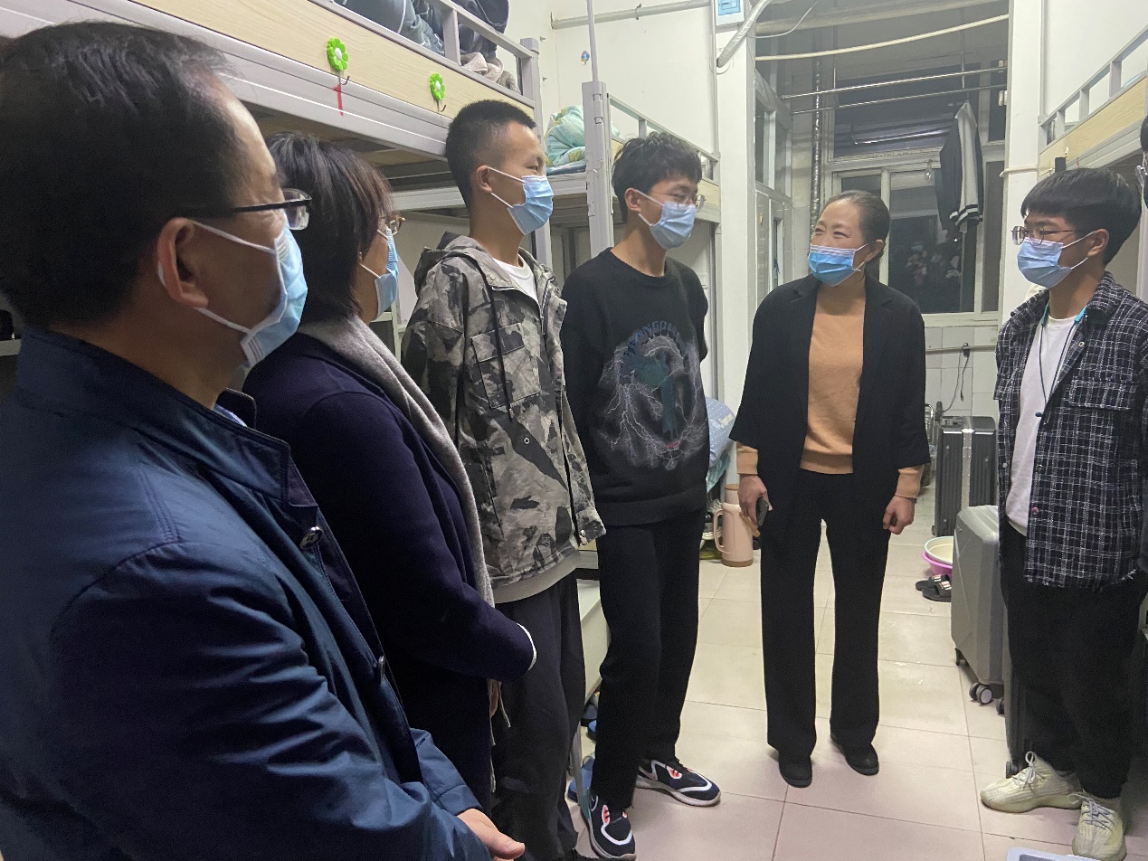 (通讯员 吴雨泽)10月12日下午,副校长吴晓红在yl6809永利集团党委书记杜留记、院长董燕飞及学院其他工作人员的陪同下,深入宿舍看望慰问部分2021级新生,表达学校对2021级新生的关心与慰问。