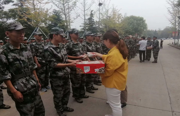 上午9点开始,学院各班级派代表陆陆续续到达电气学院学工办领取学校与学院为大家精心准备的月饼。中午十一点,党总支副书记宁蕴绯带领新生辅导员及全体班主任到军训场地为新生带去祝福。宁蕴绯讲到,今天是国庆节,又是中秋佳节,她首先代表学院向在场参训的教官和学生送去祝福,然后提到2020年是特殊的一年,大家今天能够坚持在军训场认真刻苦训练,就是未来脊梁的基础素养。同时她还叮嘱新生在适应新生活的过程中不要忘记跟家人联系,尤其在这特别的日子,更要和家人报平安,给家人送去问候和祝福。领到月饼之后,电气学子的脸上洋溢着幸福的笑容,并对学校和学院表示感谢。同学们也深深感受到,做好我们当代大学生能做的该做的就是最好的爱国护国,成长为更好更强的自己就是为家庭负责,为家庭担当。至此,电气学院“方阵送关怀,学院递温暖”——电气学院二零爱你大国日小家节送关怀活动正式结束。