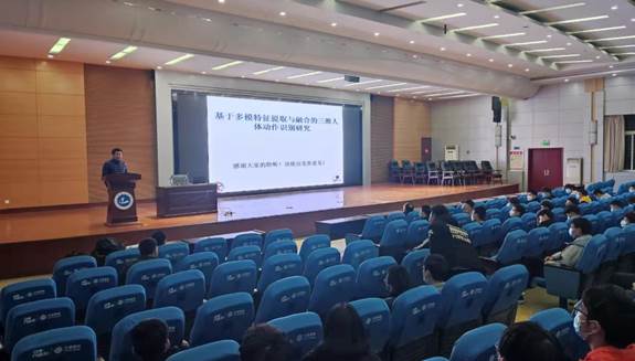 本场学术讲座第二环节由自动化系梁成武博士围绕“基于多模特征提取与融合的三维人体动作识别研究”做报告,梁成武博士首先为师生介绍了什么是人工智能,主要研究哪些内容,接下来针对计算机视觉识别人体动作做了详细报告。接下来的交流互动环节,梁成武博士与现场师生关于人工智能方面的热点问题进行讨论和交流。