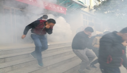 首先,保卫处魏老师给大家讲解了本次消防演练的目的与意义,以及火灾逃生的注意事项。然后,进行了火灾逃生演练,一声哨落下,演习开始,在模拟烟雾中,同学们快速用衣服遮住口鼻,并弯下腰,沿着墙壁和门边迅速冲出浓烟滚滚的大楼,老师组织学生有序的撤离现场。最后,进行的是消防演练,两位老师制造火灾现场后,演示了如何使用灭火器,并随机抽取部分同学使用灭火器灭火,以此来保证每一位同学能够正确掌握使用灭火器方法并在最短时间内将火扑没。此次消防演练在学生们的积极配合下顺利结束。