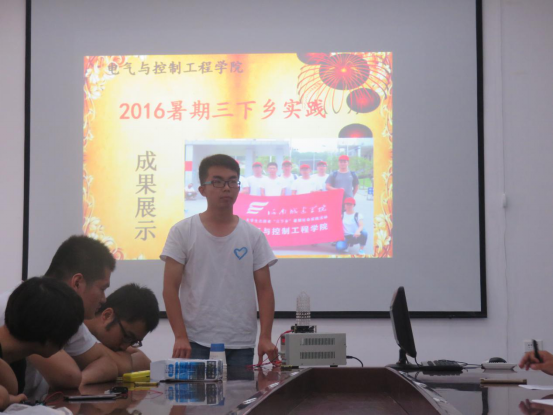 大会伊始,董燕飞高度赞扬志愿者们在面对首次创新,毫无经验的情况下,克服种种困难,圆满完成三下乡社会实践工作,展现出电气学子良好的意志品质和精神面貌。之后进行作品成果展示环节,实践团的成员依次上台介绍演示自己的作品,每个同学都表示自己在活动期间学到了很多,也说了自己制作作品的心得体会。