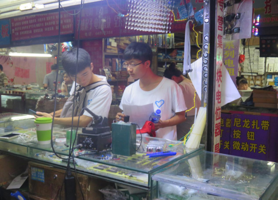郑州中州商场处于郑州市物流聚集地、交通便利,地理位置得天独厚,具有成熟批发市场的诸多优势,主要经营各种家电、电子、音响工程等小商品。徐安峰老师先是给同学们大致介绍了各楼层的经营范围,简单的介绍了所见到的商品的用途并将这些东西和课本相连。同学们认真听讲并作了记录。随后,老师将同学们分成小组,按照此前选定的课题和确定的原件购置清单购置元器件。在购置过程中同学们既学习了更多的元件知识,也掌握了元器件的市场价值,都表示大有收获。
