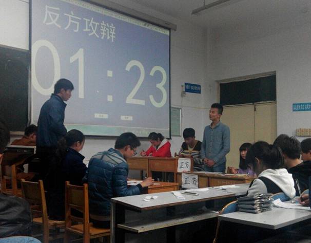 在辩论赛开始后,正方慷慨激昂、反方充满理性色彩的自我介绍后,比赛进入开篇立论环节。正反方用通俗幽默的语言陈述了自己方的观点。在随后的攻辩环节中,双方更是争锋相对、步步紧逼,双方辩手都围绕着本方的观点,拿出国内外的各种典型例子,在申明自己立场的同时,也频频发问,向对方发出质疑现场气氛迅速升温,达到白热化阶段。辩手们精辟的措辞,犀利的言辞,展现出咄咄逼人的气势。继短暂而精彩的观众提问环节后,比赛进入总结陈词环节。正反双方辩手清晰的思路和巧妙的陈词给观众留下了深刻印象。最后电气学院辩论队队长李世昌对本次比赛做出了点评,最终0924141班惜败,0934141在本次比赛获得冠军。