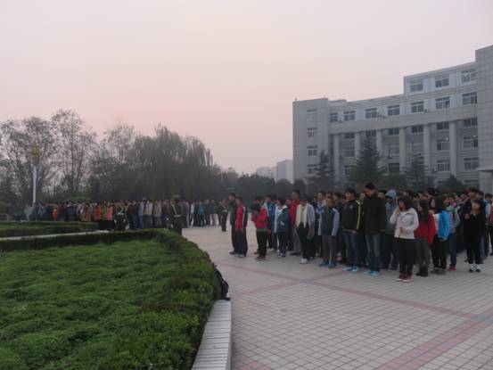 冬季早已到来,但电气学院的同学不畏严寒,陆续来到扇形广场,并有序地排队,电气学子个个精神饱满,抬头挺胸,等待着国歌地响起、五星红旗地飞扬。