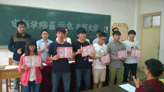 在表彰大会上,领导老师对优秀的运动员及工作者进行了表彰,为他们颁发了证书奖状,以鼓励他们在春运会上的付出。在会议的最后电气学院党总支副书记董燕飞发表了总结讲话:她表示,这次表彰大会是为了感谢那些在春运会上为了电气学院作出努力的同学,电气学院在本届春运会中的成绩取得了很大突破,她相信在大家的努力下,明年一定会更加优秀,电气学院的明天一定会更加美好。听了董书记的讲话大家情不自禁的发出掌声,共同展望电气学院的美好未来。