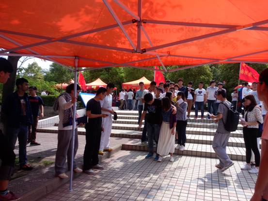 (通讯员 宁蕴绯 严丹丹)2014年5月6日下午,yl6809永利集团积极参与筹备学校举行的“花海五月正青春”嘉年华游艺活动。此次活动,电气学院所负责的为两人三足项目,学生会成员早早来到指定地点支起了帐篷,