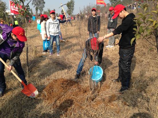 上午7点,志愿者在学校西门集合,乘车来到山顶公园。在领取树苗,合理分配好任务后,志愿者在山顶公园的山脚下荒芜的空地上,种下一颗一颗带着绿色梦想的树苗,给刚刚到来的春天又添了一丝春意。在植树的过程中,受到了河南电视台的采访,接受采访的志愿者表示:我们要用实际的行动实现绿色城市,环保家园的理念,用我们微小的行动为我们生活的环境做出一份贡献,带动更多的人加入到环保行动中来。