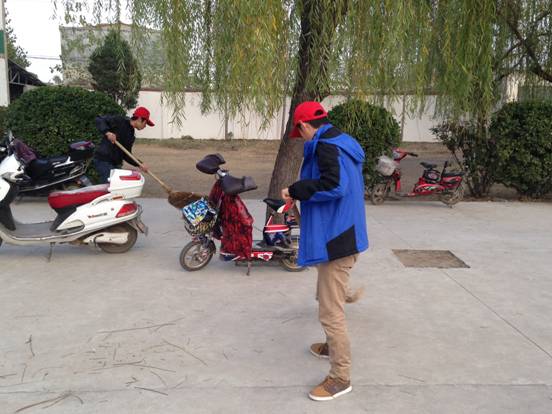 志愿者们利用课余时间打扫院落卫生