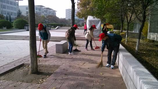 在院团总支的倡导下,志愿者们早早的就拿着扫把,簸箕,水盆来到院楼门前集合。他们进行了明确的分工,仔细认真地打扫着我们的校园。他们团结互助,积极劳动每个人的脸上都洋溢着青春的笑容。在整个打扫的过程中他们默契的配合,更体现了志愿者之间的友爱、互助精神。