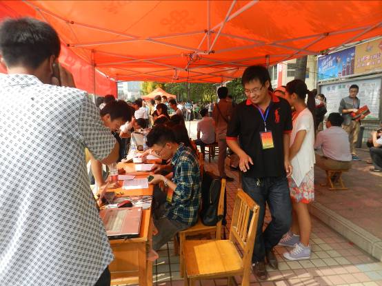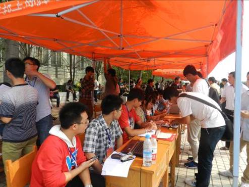 一天的工作非常辛苦,大家都很累,但是却没有人抱怨,反而都是一直热情满满的向新生介绍学校、解决问题。正是由于老师和学生会同学的共同努力,才顺利完成了2013年迎新工作。