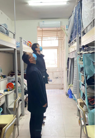 春节前,我校学生宿舍为临时集中隔离点为疫情防控工作做出了巨大贡献,虽然当时事发紧急,但学生们纷纷表示理解,用包容、支持、担当表达了“大我”和“大爱”的精神。学生宿舍在为隔离点后的安全卫生问题也是学院党委一直关注的重点。此次深入宿舍,杜留记带领辅导员着重了解了宿舍的卫生消杀情况、拆除隔离时完善修复等情况,并针对部分问题提出了处理预案。