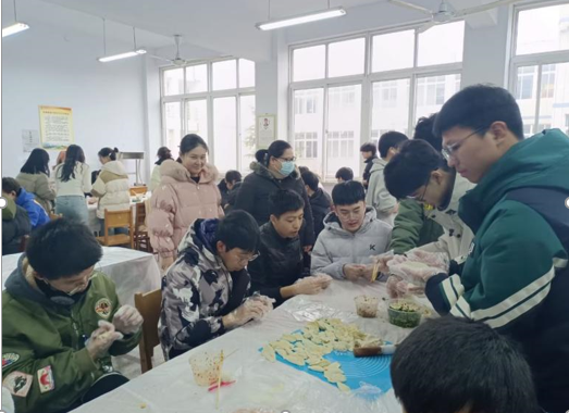 虽远离家乡,但大家因包饺子的活动拉进了彼此的距离。活动前,各班班委为大家购置了面团、饺子馅和一些厨具。活动正式开始,进行了简单的分工后,同学们纷纷撸起袖子,大展身手。不多久,一排又一排的饺子整整齐齐的出现在桌面上,有“元宝”状的饺子,还有独具家乡特色的包法,风格多样,同学之间各自分享包饺子的经验,感受着集体的温暖,整个活动充盈着欢声笑语。经过大家不懈的努力,一盘盘包好的饺子纷纷下锅。大家一边吃着刚出锅的热气腾腾的饺子一边聊天,气氛欢快活跃。
