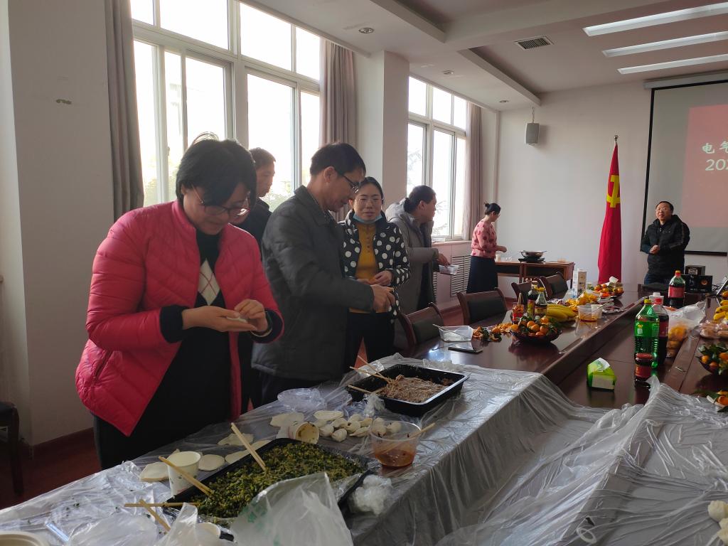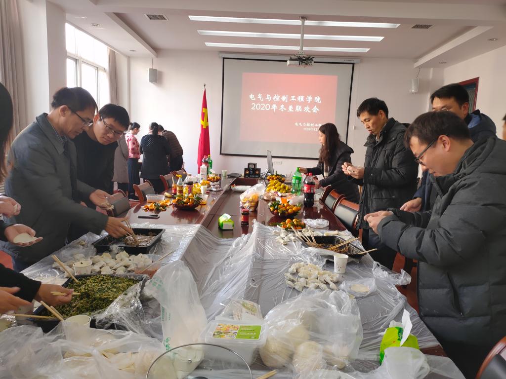 (通讯员 王丹阳)为传承中华传统习俗,活跃节日气氛,丰富电气学院教职工文化生活,12月21日电气学院分工会在2号楼B313举办了2020年冬至联欢活动,活动由电气学院分工会主席董燕飞主持。学院全体教职工参加活动。参加活动的老师纷纷拿出自己的看家本领包饺子,忙得不亦乐乎,还畅谈着冬至的习俗和趣事。午餐时刻,热腾腾的饺子新鲜出“炉”了,老师们吃饺子、话家常。一盘盘热腾腾的饺子驱散了冬日的严寒,温暖着每一位教职工的心。