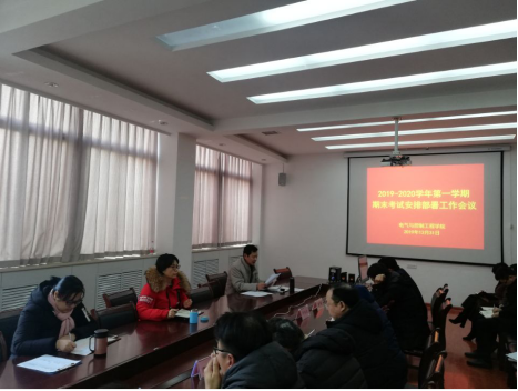 (通讯员:李佳佳)为进一步加强考试管理,规范考场秩序,营造公平公正的考试环境,全面做好期末考试工作,我院于12月31日下午2:30在会议室B313召开期末考试工作安排部署会议,会议由党总支书记董燕飞主持,全体教师参加会议。